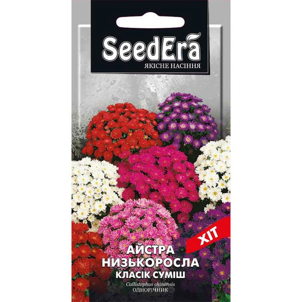 Сортотип низкорослых астр Классик. Растение формирует прочный, ветвистый куст, высотой 20-30 см. Соцветия махровые, очень красивой формы, диаметром 10-12 см. Одновременно на растении цветет 6-8 соцветий разнообразных цветов и оттенков. Растение неприхотливое, холодоустойчивое, светолюбивое, переносит заморозки до -3 градусов. Идеально смотрится в букетах, сборных цветниках группами.