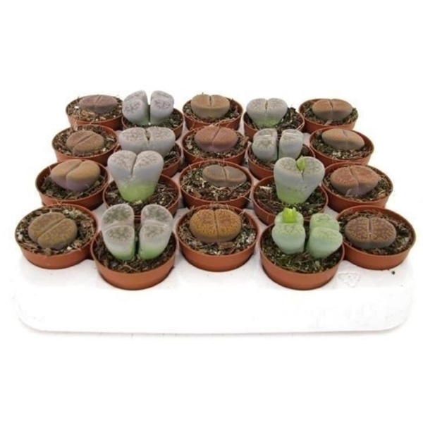 Литопс – уникальное суккулентное растение из семейства Аизовые. Из-за его сходства с камнем, литопс часто называют живым камнем. Родиной литопса является Южная Африка, где он растет на каменистых, засушливых пустынных местах. Представляет собой два сросшихся толстых листа, разделенных неглубокой щелью, из которой появляется цветонос и новые листья. Цветы белые или желтые (изредка оранжевые) 2,5 - 3 см в диаметре, иногда душистые, в культуре цветет литопс в августе (иногда и раньше) — ноябре.