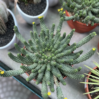 Период цветения: На протяжении всей жизни может ни разу не зацвести. Как и все суккуленты, этот вид крайне редко радует появлением цветоносов. Основную декоративность составляет крупный стебель с листьями, напоминающий канделябр со свечами.