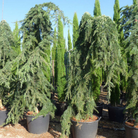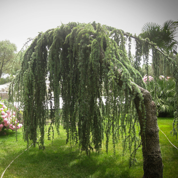 Кедр гималайский плакучий - среднее, живописное декоративное дерево для солитерной посадки на лужайках и в садах. В природе встречается в северо-западных Гималаях и Афганистане. Дерево достигает 15-20 м в высоту, а ширина составляет 2-4 м. Плакучая крона с прямым стволом и свисающими до земли дугообразными ветками. Иголки серо-зеленые, 3-5 см в длину, до 30 штук в пучке на коротких веточках.