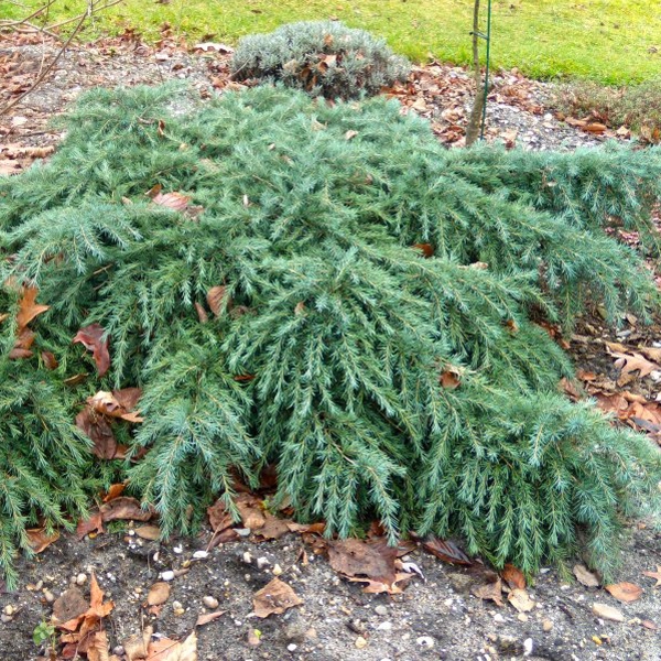- хвойное вечнозеленое растение рода Кедр, семейства сосновых. Этот сорт представляет собой карликовое дерево с голубовато-зеленой хвоей - игольчатыми листьями, расположенными спирально на молодых побегах. Достигает всего 60 см в высоту и около двух метров - в ширину. Кедр стелющейся формы. Естественная высота после 10-ти лет 30-60 см, а вширь прирастает по 30-40 см в год. Может выращиваться на бамбуковых подпорках и формироваться как маленькое кедровое деревце с живописными нерегулярными ветвями.