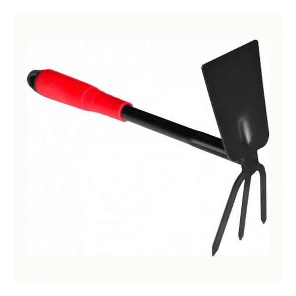 Мотыжка комбинированная длиной 320 мм шириной 65 мм, металлический черенок с пластиковой рукояткой. Одна сторона инструмента – это мотыга трапециевидной формы, которую используют для обработки междурядий, удаления сорняков, создания поливных борозд, а другая с зубьями (культиватор в миниатюре), которую используют для для рыхления, окучивания, прополки и выравнивания почвы. Ее можно использовать для работы в узких междурядьях без повреждения растений. Также этот инвентарь используют для формирования углублений и канавок в почве под посадку семян, для окучивания растений, в частности, картофеля, что приводит к усилению его роста.
