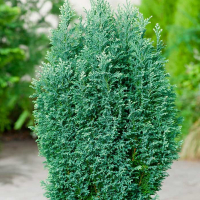 Кипарисовик лавсона Сноу Вайт - колоновидный, плотный, вечнозеленый хвойный кустарник, высотой 2-3 м. Ветви короткие, тонкие, коричнево-зеленые, как и концы побегов, прямые, слегка поникшие.