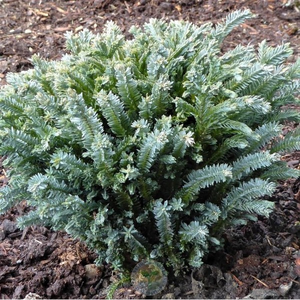 Один из самых лучших карликовых сортов с плотной формой кроны и очень медленным ростом. Хвоя блестящая, сине-зеленая. Прекрасно развивается на плодородных, влажных и хорошо дренированных почвах. Идеально подходит для альпинария и рокария. Эффектно будет выглядеть привитым на штамбе.