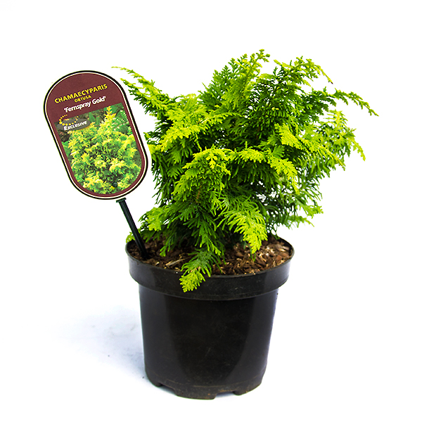 Кипарисовик притупленный "Fernspray Gold" — очень нарядное, эффектное, невысокое деревце. Взрослое растение вырастает до 2,5 —3 м при диаметре кроны около 1 м. Растет сравнительно медленно, годовой прирост не превышает 5 —7 см. Ствол прямой, ровный. Скелетные ветви разной длины, слегка дугообразно изгибающиеся, неравномерно расходятся от центрального побега и далеко отстают друг от друга, сильно ветвящиеся на концах. Боковые побеги и верхушка деревца повисшие. Молодой прирост блестящий, с лимонным оттенком. Месторасположение: Теневынослив, но любит открытые, хорошо освещенные солнцем места. Почвы необходимы питательные, увлажненные, дренированные. Совершенно не переносит сухих грунтов.