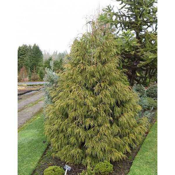 Кипарисовик нутканский Aldrich Mountain - является интересной разновидностью Thuja plicata, которая привлекает внимание своей необычной хвоей и универсальностью в ландшафтном дизайне. Этот кипарисовик отличается папоротникообразной зеленой хвоей, которая также издает приятный аромат. Растение демонстрирует хорошую адаптацию к разнообразным типам почв и считается неприхотливым в уходе, что делает его привлекательным выбором для садоводов и дизайнеров.