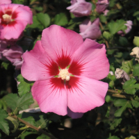 Уход: Гибискус сирийский "любит" теплые и солнечные участки двора. Оптимальным местоположением в оранжерее будет юго-восточная сторона. Способен стойко переносить перепады температуры, но на зиму (если цветок остается в открытой почве), его нужно утеплить. Растение нужно регулярно обрезать и следить за уровнем влажности почвы.