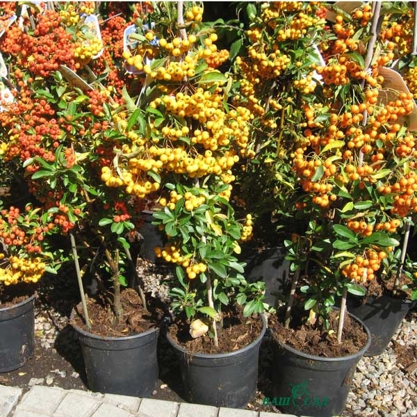 Пираканты – многолетниий вечнозеленый кустарник с длинными шипами. Весной растение сплошь покрыто бело-кремовыми душистыми цветками, а осенью – эффектными блестящими красными, оранжевыми или желтыми ягодами. Пираканты нетребовательны в уходе и отлично поддаются выращиванию в открытом грунте в регионах с мягким климатом, а в более холодных зонах – в качестве горшечного растения-топиари или бонсаи