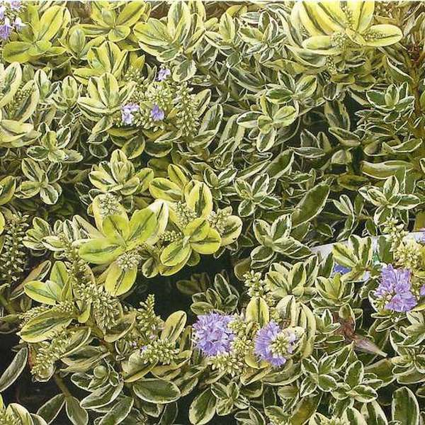 Хебе Андерсона — вечнозеленый многолетник, родиной которого является Новая Зеландия. В естественных условиях может достигать внушительных размеров (до 2 м). В условиях комнаты в разы скромнее. Крона растения смотрится довольно компактно, хотя побеги ветвистые и раскидистые. Она округлая, собранная из множества гладких, заостренных на концах листьев. Листовые пластины кожистые, продолговатой формы, с цельным краем, занимают на ветвях супротивное расположение. Листья сидят на коротких черешках. У некоторых сортов зеленая поверхность листа покрыта хаотичными разводами белого цвета. Это придает особую привлекательность Хебе Андерсона.