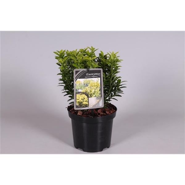 Бересклет японский - вечнозеленый кустарник с кожистыми темно-зелеными листьями, узко-эллиптической формы с мелкозубчатым краем, 3-8 см длиной. Цветки желтовато-зеленые до 1 см, собраны в соцветия зонтик по 10-30 шт. Плоды — розовые и оранжевые коробочки.