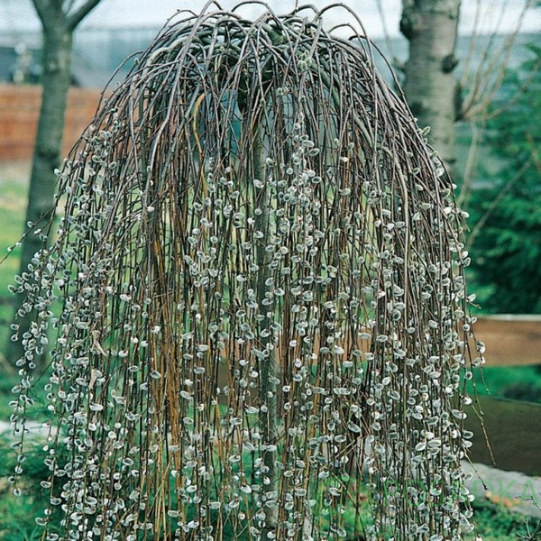 Ива плакучая — декоративное очень красивое привитое на штамбе дерево ивы, с живописной плакучей кроной весной все усеянное котиками. Привлекательная на всех стадиях роста, на протяжении всего года будет украшать вашу композицию. Дерево произрастает на 30-40 выше прививки на штамбе благодаря уплотнению спадающих галутов. Побег плакучей ивы, золотисто-желтые, гибкие, ниспарят до самой земли. Крона плакучая, изящная. Листья ланцетные, тусклые, осенью желто-зеленого цвета. Нетребовательный к почве. Имеет хороший вид единичных и групповых посадок в течение всего года. Морозостойкость высока, не требует укрытия на зиму.