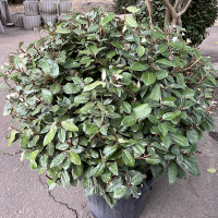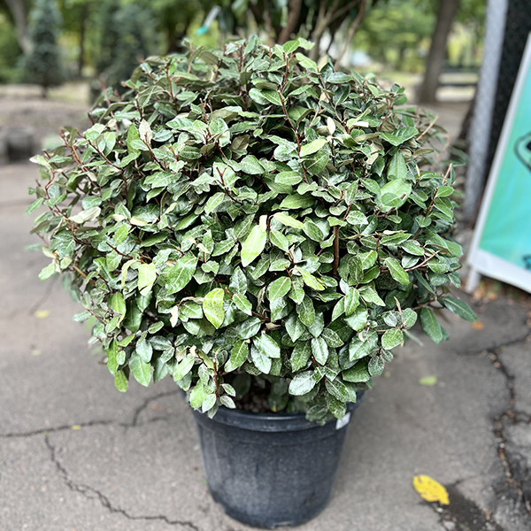 Элеагнус (лох) сompacta - вечнозеленый декоративный кустарник с плотной шаровидной кроной, темно-зелеными листьями с серебристым отливом и очень ароматными кремово-белыми цветами, появляющимися осенью. Он используется для живых изгородей, одиночных посадок и создания контрастных композиций. Растение неприхотливо, хорошо растет на солнечных или полутенистых участках.