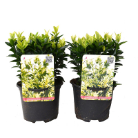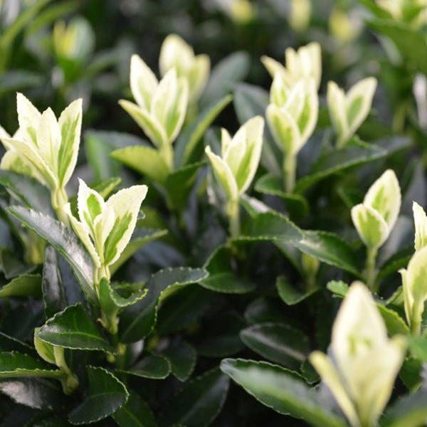 Euonymus japonicus Francien - это компактный, густой вечнозеленый кустарник с прямыми ветвями, известный своими глянцевыми темно-зелеными листьями с кремово-белой каймой, особенно яркими на молодых побегах. Этот сорт бересклета японского обычно достигает высоты до 1 метра, идеально подходит для живых изгородей, контейнеров и ландшафтного дизайна.