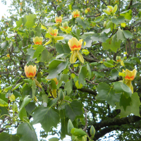 Лириодендрон тюльпанный, Liriodendron tulipifera или тюльпановое дерево - крупное, высокое, листопадное дерево семейства магнолиевых. Озеленителям и садоводам это дерево приглянулось благодаря своим невероятно красивым, похожим на тюльпаны, цветам, которые словно тонут в лироподобной листве.