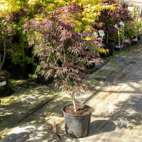 Acer palmatum Trompenburg - это листопадное дерево или крупный кустарник из группы Matsumurae, известное своей уникальной формой листвы и яркой сезонной окраской. Этот сорт был удостоен престижной награды RHS Award of Garden Merit за свои выдающиеся декоративные качества.
