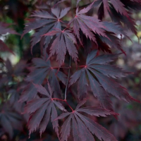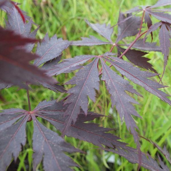 Листва: Глубоко рассеченные, кружевные листья. Весной они имеют ярко-красно-фиолетовый или бордовый оттенок. Летом окраска темнеет до насыщенного темно-красного, почти черного цвета. Осенью дерево приобретает эффектный ярко-алый или оранжево-красный окрас.