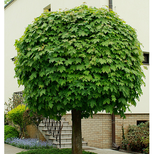 Acer platanoides Globosum - листопадное небольшое дерево на штамбе с симметричной, сильно разветвленной, плотной, шаровидной кроной, которая сохраняется без формирующей обрезки. С возрастом крона становится более плоской.