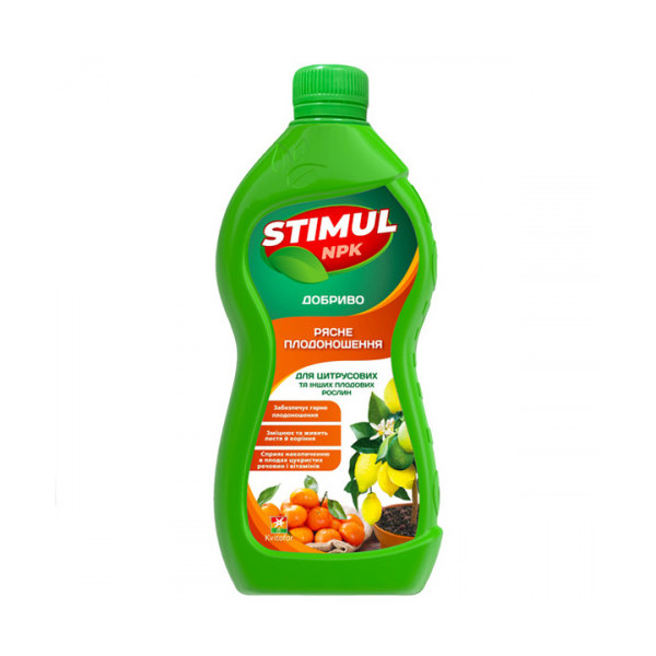 Стимул NPK для цитрусовых и других плодовых растений 550 мл — лучшее жидкое удобрение от украинского производителя. Теперь в удобной таре! Горшечные культуры испытывают дефицит питания быстрее, чем садовые. Уже спустя 4 месяца после посадки им нужна подкормка. Препарат Стимул обеспечивает растения необходимым комплексом витаминов и минералов. Он сокращает срок созревания плодов и улучшает их вкусовые качества. Также повышается стойкость культур к заболеваниям. Если Вы еще раздумываете, чем подкормить апельсин, почитайте отзывы об удобрениях для цитрусовых в интернете. Стимул NPK доказал свою эффективность и приобрел верных фанатов среди садоводов.