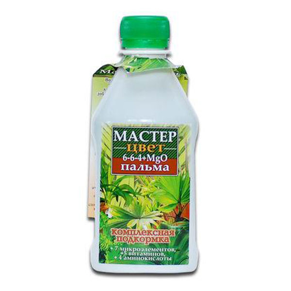 Удобрение для пальм Мастер Цвет - добавка для комплексной подкормки всех видов пальм закрытого и открытого грунта. В состав средства не входит хлор, что делает его абсолютно безопасным даже для использования на саженцах или только купленных растениях. Особенностью является широкий спектр использования. Добавка применяется не только для пальм, но и для папоротников.