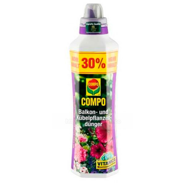 Удобрение для балконных Compo - концентрированная минеральная добавка для всех цветущих комнатных растений. В состав входят микро- и макроэлементы (молибден, цинк, железо и прочие), улучшающая состав почвы и повышающие иммунитет Гераниевых, Паслёновых, Астровых и других семейств.