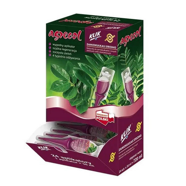 Удобрение Zamiokulkas Strong доступно в удобном аппликаторе, который вам нужно всего лишь внести в почву в горшке. Он медленно высвобождает небольшие дозы питательных веществ и, следовательно, обеспечивает надлежащее оплодотворение в течение четырех недель. Это водный раствор из трех компонентов: азота, фосфора и калия, которые существенно влияют на развитие корней роста листвы.