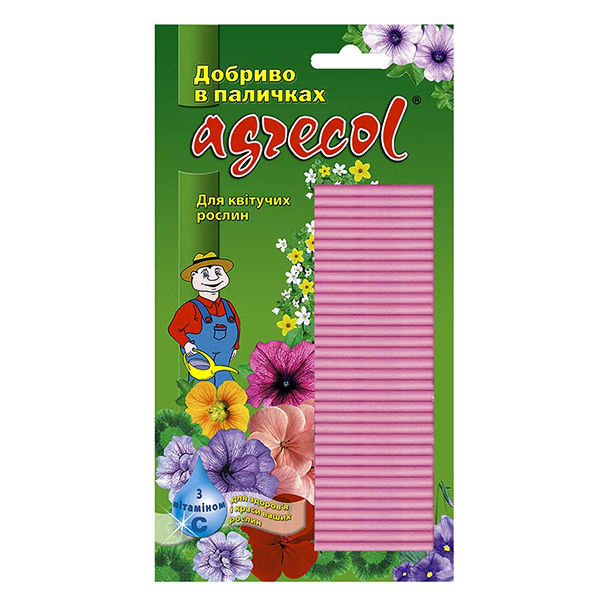 Добриво Agrecol у паличках для квітучих рослин (30 шт) - палички добрив для квітучих рослин з вітаміном С, бренду Agrecol. Призначений для добрива квітучих рослин, що вирощуються у будинках, на терасах та балконах. Форма добрив забезпечує вивільнення поживних речовин, залежно від потреб рослин.