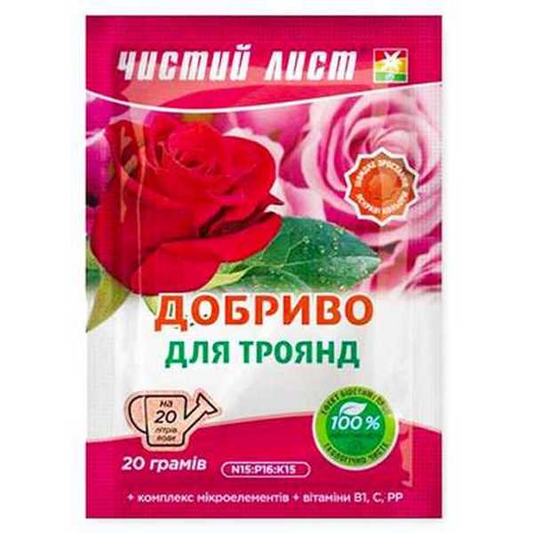 Высокоэффективные минеральные удобрения для роз Чистый лист содержат все необходимые минералы и витамины для эффективного питания растения. Средство повышает иммунитет, качество цветов, улучшает стойкость и плодородие растения, положительно влияет на цвет и форму роз. Позаботьтесь о вашем растении с удобрением Чистый лист и останьтесь довольны высоким качеством ваших цветов.