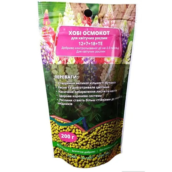 Осмокот Блум 12-7-18+Te – комплексное минеральное гранулированное удобрение специально созданное для цветущих растений. Благодаря своим малым гранулам оно легко и равномерно распределяется в субстрате. Питательные вещества постепенно высвобождаются из гранул в течение 2-3 месяцев в зависимости от температуры почвы.