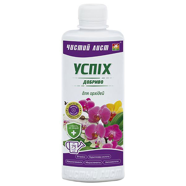 Эффективное минеральное удобрение «Успех» для орхидей, содержит все необходимые макро и микроэлементы, в доступной для полноценного питания растений форме. Одной из отличительных особенностей данного удобрения является повышенное содержание веществ влияющих на увеличение бутонообразования и стимуляцию цветения. При этом оно повышает устойчивость орхидных к заболеваниям и предотвращает развитие хлороза, что немаловажно для этого вида растений.