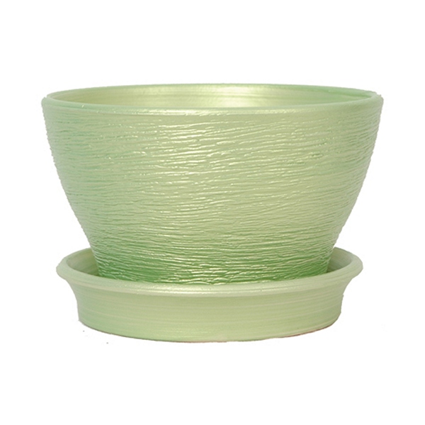 Стильный керамический горшок для сенполий с перламутровой поверхностью. Фиалочницы из керамики имеют весомые преимущества: их стенки пропускают воздух, необходимый корневой системе растений, корни в этих вазонах не перегреваются.