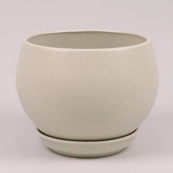 Керамический горшок Шар крошка бежевый прекрасно дополнит любую обстановку, придавая ей изящество, индивидуальное своеобразие и художественность. Горшок имеет дренажное отверстие и укомплектован поддоном. Изготовлен из высококачественной керамики.