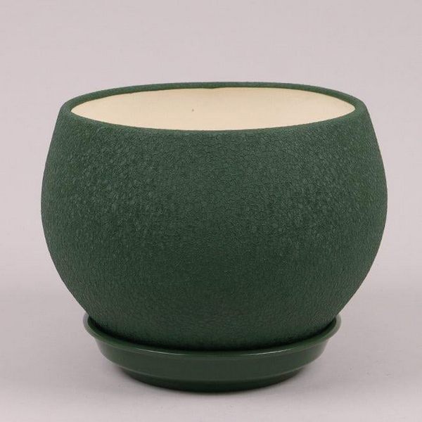Керамический горшок для цветов Шар шелк красного цвета изготавливается по особой технологии. Поверхность имеет рельефную структуру, похожую на сжатую шёлковую ткань. Несмотря на свой экзотический внешний вид это очень практичный горшок для цветов. Горшок имеет дренажное отверстие и укомплектован подставкой. Сделан из высококачественной керамики.