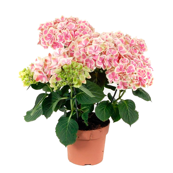Крупнолистовая гортензия в горшке (Hydrangea) - станет прекрасным украшением любого сада. Цветок характеризуется высокой выносливостью, продолжительным цветением и стойкостью к болезням. Благодаря способности накапливать алюминий, способна менять оттенки лепестков.