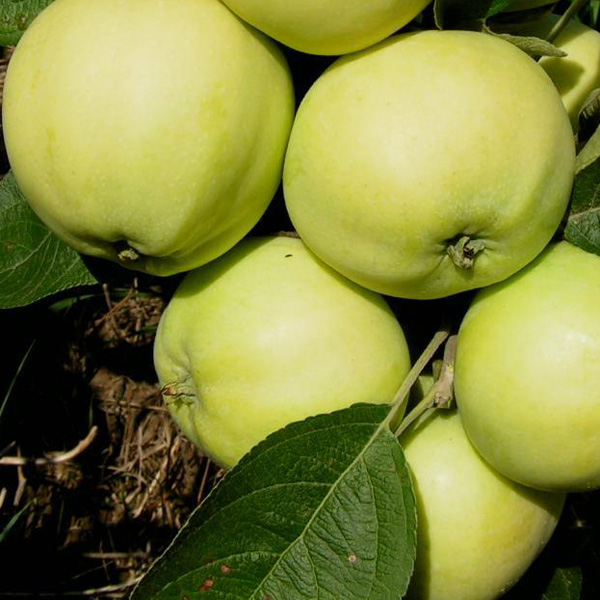 Плоды: Плоды средней величины, беловато-желтого цвета, при сборе с легким восковым налетом. Мякоть плодов зернистая, мягкая, белая, кисло-сладкая. Средний вес яблока от взрослой яблони составляет 60 граммов, от молодой яблони – 120 — 150 грамм.