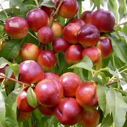 Нектарин Мадам Бланшет – изысканный сорт с белой мякотью Нектарин Мадам Бланшет (Madame Blanchette) – это средне-поздний сорт голландской селекции, который завоевал популярность благодаря крупным, ароматным плодам и высокой урожайности. Созревает в первой половине августа, обеспечивая стабильный и обильный урожай. Характеристики дерева Дерево среднерослое, высотой до 3 метров, с компактной, густой кроной округлой формы. В плодоношение вступает уже на 2-й год после посадки, радуя садоводов стабильными урожаями. Цветение позднее, что позволяет избежать повреждений от весенних заморозков. Описание плодов Плоды очень крупные, массой 200–280 г, округлой или слегка овальной формы. Основной фон кожицы бело-желтый, но большая часть поверхности покрыта насыщенным темно-красным румянцем. Мякоть кремово-белая, плотная, но сочная, с выраженным сладким вкусом и приятным ароматом. Косточка хорошо отделяется, что делает сорт удобным для употребления. Достоинства сорта Высокая урожайность – дерево плодоносит ежегодно и обильно. Устойчивость – сорт устойчив к основным заболеваниям и отличается хорошей морозостойкостью. Хорошая транспортабельность – плоды сохраняют товарный вид при транспортировке и длительном хранении. Отличный вкус – благодаря балансу сладости и сочности, нектарин Мадам Бланшет подходит как для свежего употребления, так и для переработки. Этот сорт станет прекрасным выбором как для частных садов, так и для коммерческого выращивания, сочетая в себе декоративность, надежность и высокие вкусовые качества.