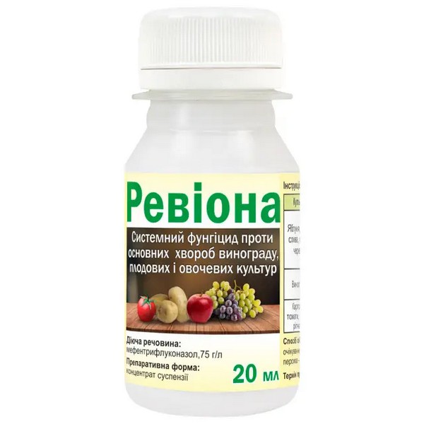 Ревиона на основе уникального нового действующего вещества Ревисол обеспечивает самый широкий спектр контроля заболеваний многих экономически вредных болезней, которые поражают все основные семечковые и косточковые плоды. Обеспечивает надежный контроль заболеваний при любых температурных условиях. Полевые испытания при температуре +3–31°C подтверждают надежную эффективность Ревиона. Температура не является ограничительным фактором.