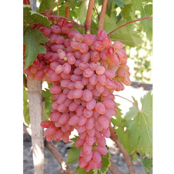 Гроздь средней величины или крупная, цилиндро-коническая, часто крылатая, рыхлая и среднеплотная. Средняя масса виноградной грозди 310 г. Ягода средней величины, овальная, зеленовато-розовая, иногда темно-розовая. Средняя масса 100 ягод 216 г. Кожица тонкая, рвущаяся. Мякоть мясисто-сочная, вкус гармоничный. Виноград бессемянный, развиваются только мягкие рудименты.