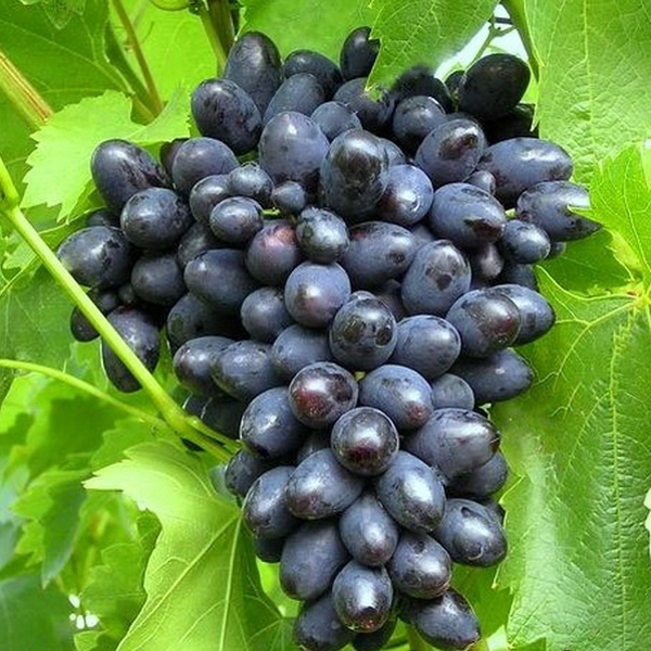 Ягода крупная 31 х 19 мм, 6-8 г, темно-фиолетовая. Мякоть плотная, сладкая, ароматная, внутри небольшое количество легко отделяемых семян, кожица не ощущается при еде. Масса грозди 400-600 г, отдельные до 1,5 кг. Грозди могут долго висеть на кустах без потери вкусовых качеств.