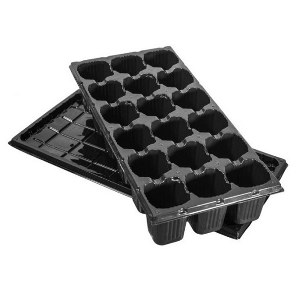 Кассета с большими квадратными ячейками 18 штук и поддоном.