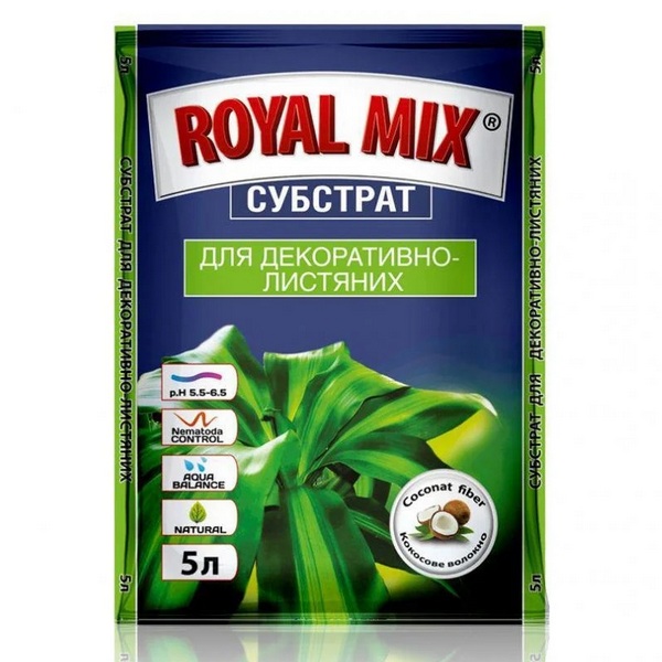 Субстрат «Royal Mix» для декоративно лиственных - готовая к использованию, экологически чистая смесь, изготовленная из высококачественных прибалтийских верховых и украинских низинных торфов с добавлением кокосового волокна, сапонита и повышенным содержанием азотных удобрений ведущих европейских производителей.