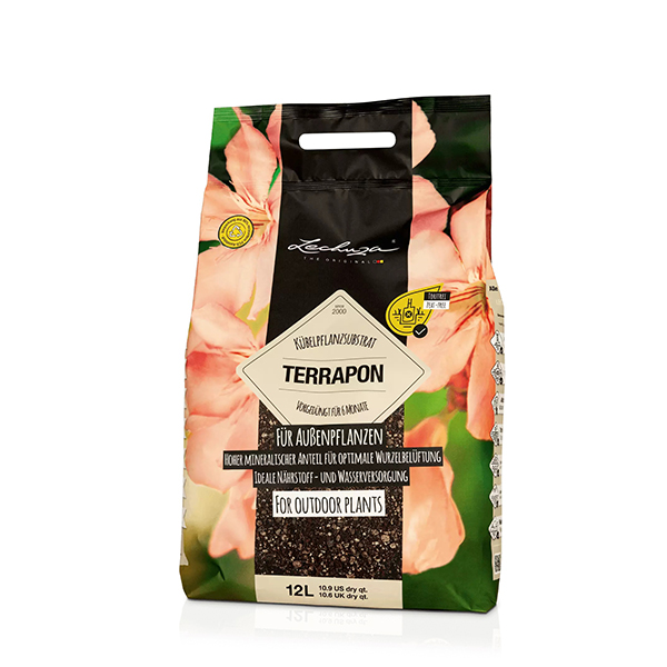 TERRAPON – органично-минеральный субстрат для горшков для всех цветущих и комнатных растений, который особенно подходит для использования на открытом воздухе благодаря своему особому составу. Субстрат без торфа совмещает гумус и минеральные составляющие. Это обеспечивает оптимальную аэрацию корней у ваших кашпо. Эта дренажная способность особенно важна для растений на открытом воздухе во избежание увлажнения растения и избегания корневой гнили. Во благо безопасности природы, субстрат не содержит торфа.