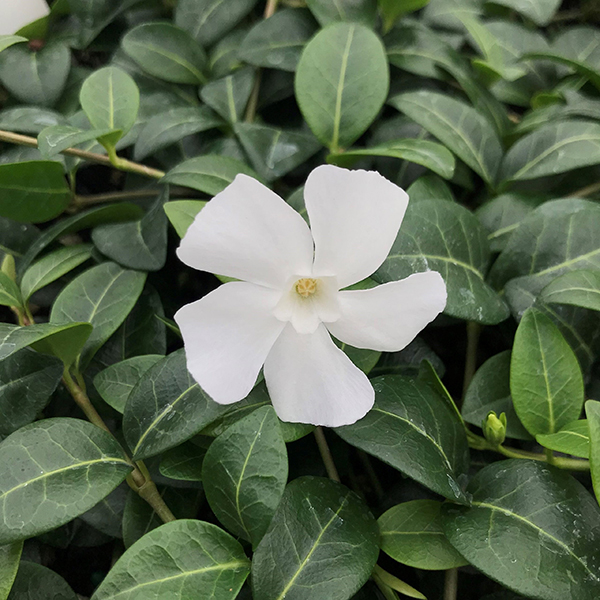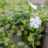 Барвинок Alba - это привлекательное растение с белыми цветками. Оно имеет длинные, стелющиеся побеги, с аккуратными, яйцевидными листьями. С весны до ранней осени появляются одиночные цветки. Компактный вид, он подходит для выращивания в горшках, или для заполнения пробелов в передней части бордюра.