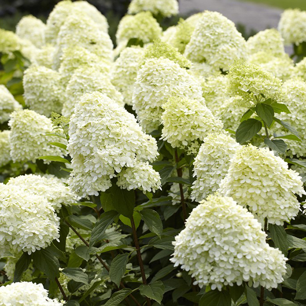 Гортензия метельчатая Лаймлайт - быстрорастущий, морозоустойчивый куст с густой округлой кроной. Отличительная особенность этого сорта - это прочные побеги, способные выдержать крупные соцветия, благодаря чему куст держит форму и не разваливается. Достоинством гортензии Лаймлайт считается ее наряд из многочисленных, больших соцветий лимонно-белого оттенка на фоне сочных зеленых листиков, который восхитительно смотрится на протяжении всего лета.