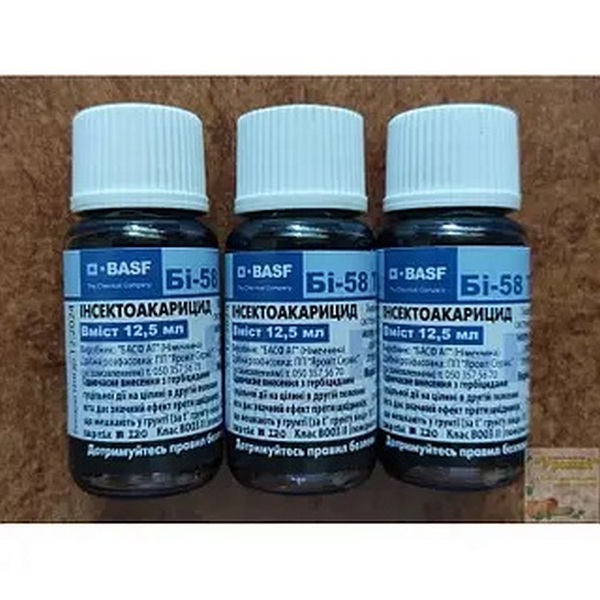 БИ-58 применяется от следующих вредителей: щитовки ложные, щитовки, клещи, листовертки, тля, медяница, плодожорка, моль, листогрызущие, гусеницы, жуки, пилильщики, червец, цикадки, галлицы, клопы, трипсы и др.