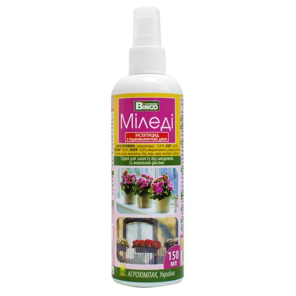 Миледи спрей – препарат двойного действия: контактно-системный спрей для борьбы с листогрызущими и сосущими вредителями и удобрение для подкормки декоративных и комнатных растений. Купить Миледи спрей от вредителей для комнатных растений можно в нашем интернет магазине Гарден Клаб с бесплатной доставкой и по лучшей цене.