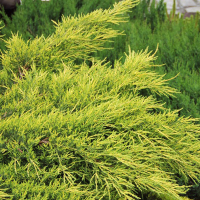 Можжевельник Пфитцериана Ауреа (Pfitzeriana Aurea) - гибридный хвойный кустарник. Как и обычная Pfitzeriana, характеризуется раскидистой объемной кроной и сильной корневой системой. Характерным отличием от исходного вида являются желтые иголки на окончаниях основных ветвей.
