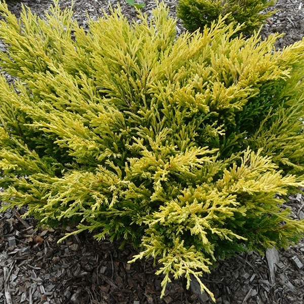 Хвоя: густая, чешуйчатая, ярко-желтая, осенью бронзового оттенка.