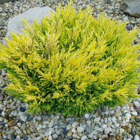 Можжевельник горизонтальный Лайм Глоу - вечнозеленый, с декоративной, хвоей ярко-желтого цвета кустик, с плотной, подушковидной формой кроны высотой в 10 лет 30 см, а в диаметре 1,5 м.