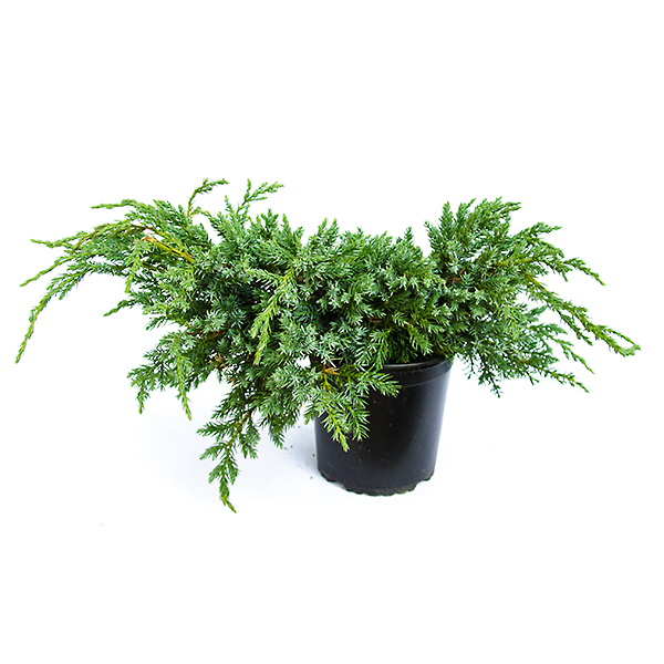 - плоско – распростёртый голубой стелющийся хвойный вечнозелёный кустарник с длинными, часто – расположенными, образующими неправильную подушковидную форму ветвями и слегка наклонёнными вниз концами побегов. В возрасте 10 лет достигает в высоту 0,6 м и в диаметре 2-2,5 м