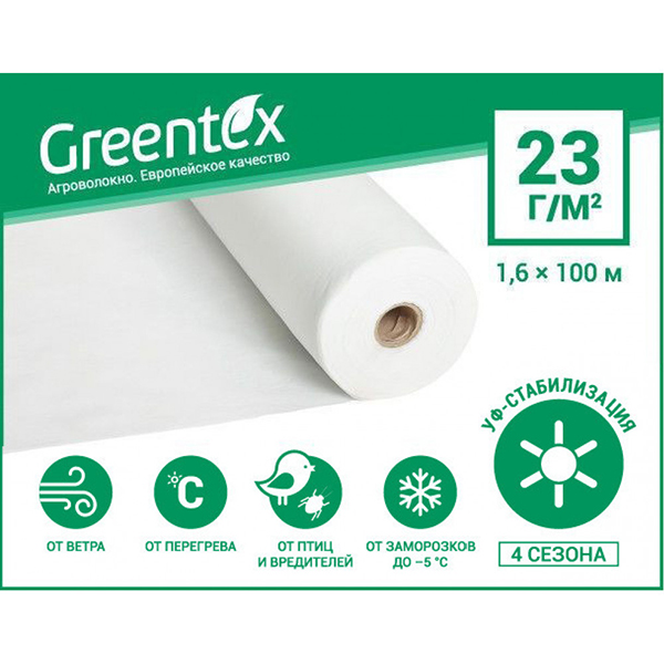 Агроволокно Greentex плотностью 23 г/м.кв, ширина 1,6 м, цена за м.п.